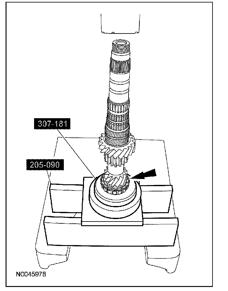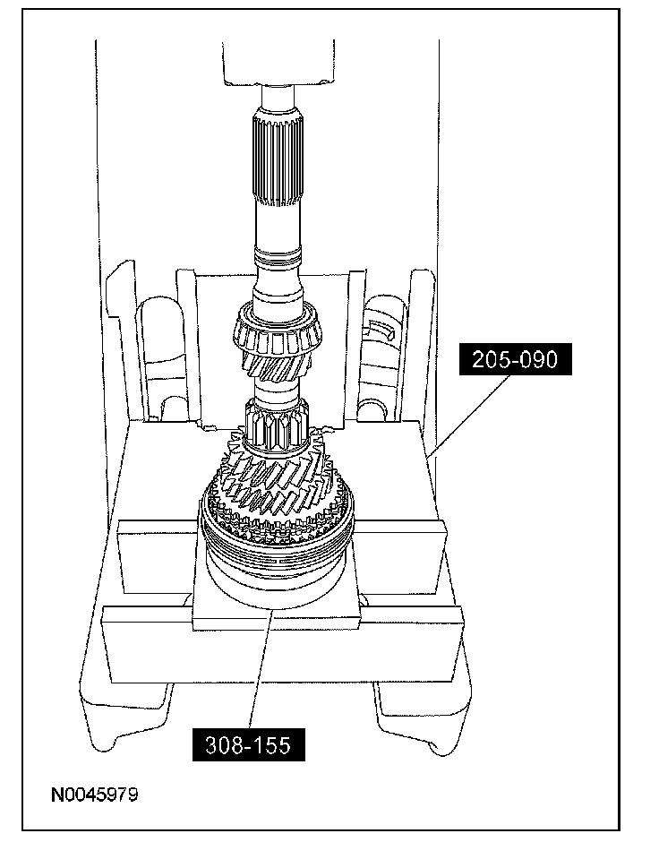 Using the special tools, press on the synchronizer blocking ring, 4th gear and a new bearing.