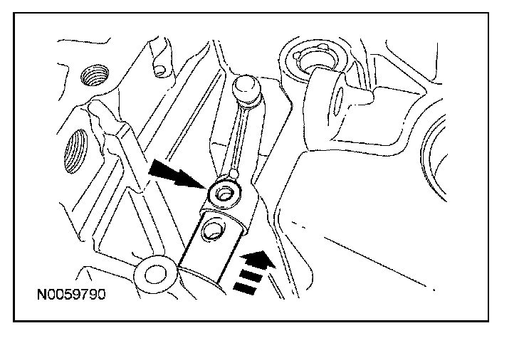 10. Align the selector arm with the indentation in the case. Using a punch, remove the selector arm roll pin. Discard the roll pin.