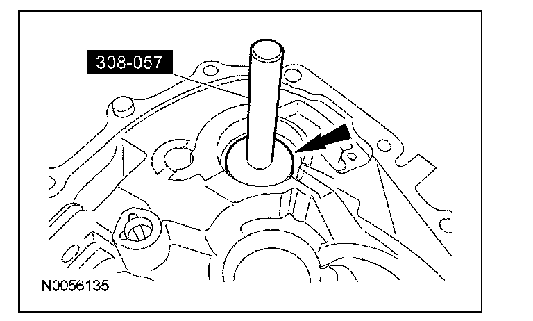 6. Using the special tool, install the output shaft bearing cup into the clutch housing.