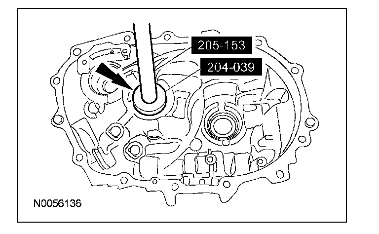 7. Using the special tool, install the differential bearing cup into the clutch housing.