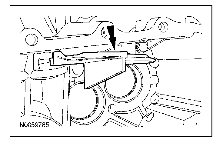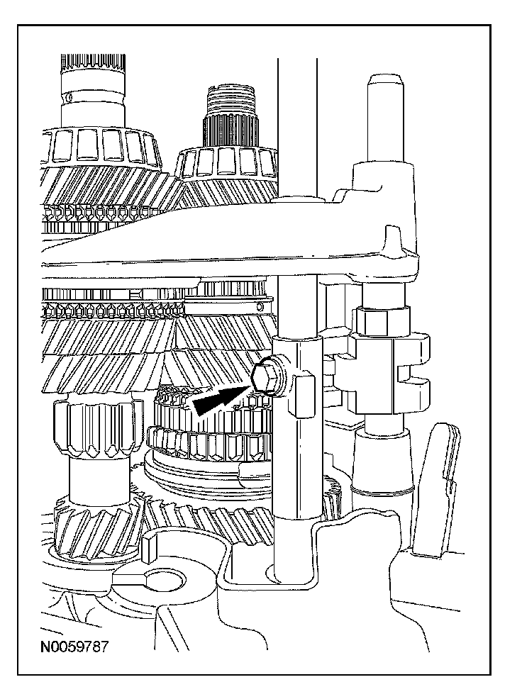 14. Remove and discard the reverse/5th shift fork roll pin.