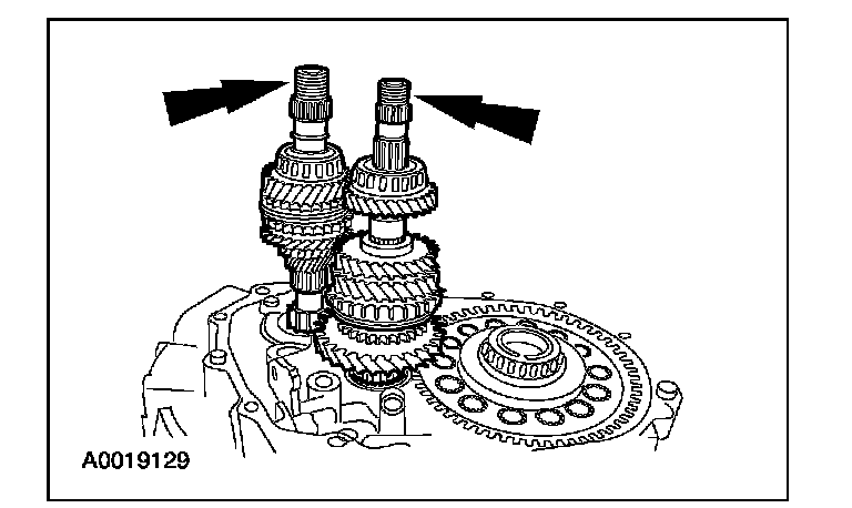 2 Using a punch, release the locking tabs from the shafts. Remove and discard the input and output shaft locknuts.