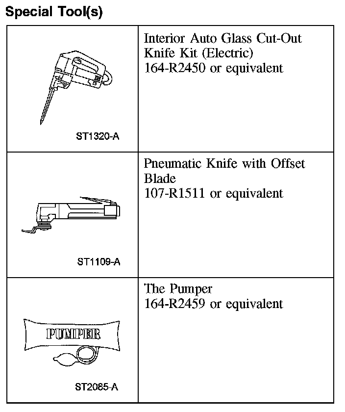 CAUTION: To avoid rust formation, use extreme care not to scratch the paint or primer or otherwise damage the pinchweld during glass removal.