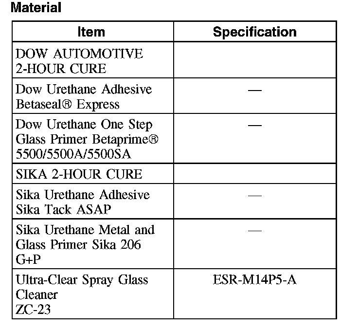 - Be sure to use the same brand and cure-rate products for the adhesive and primer. Do not mix different brands of urethane and primer. Refer to the Material Chart in this procedure.