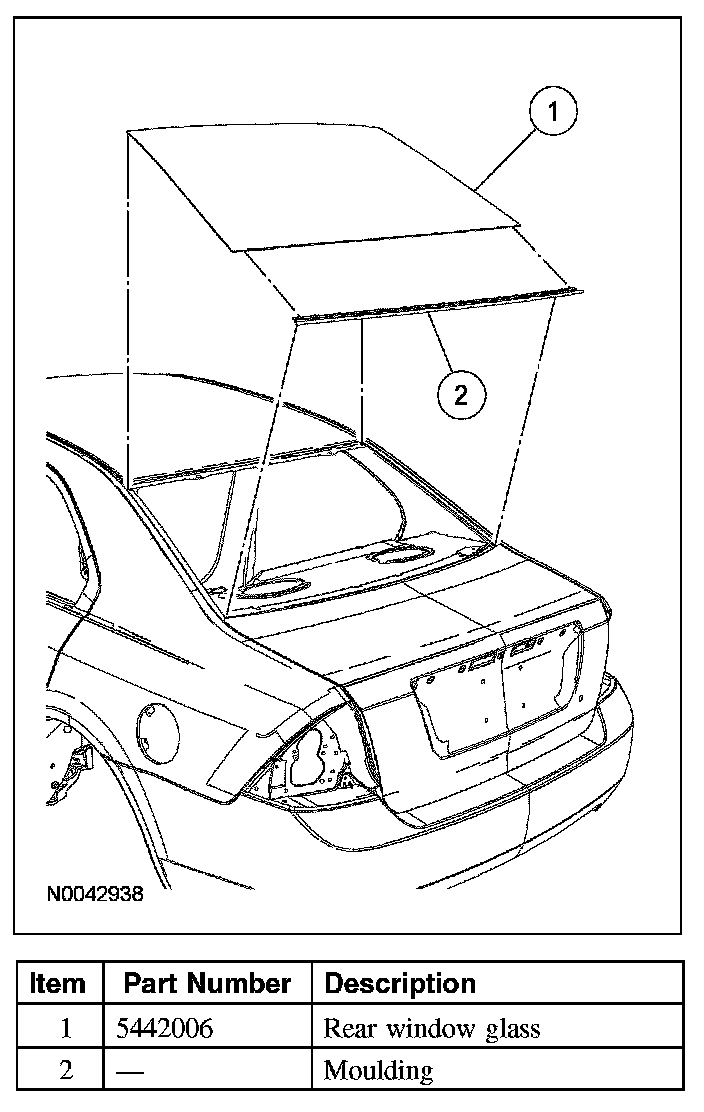 NOTE: If the rear window glass is being removed to repair a dust/water leak, remove and reinstall the existing rear window glass.