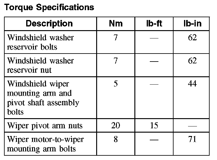 Wiper and Washer Systems: Specifications