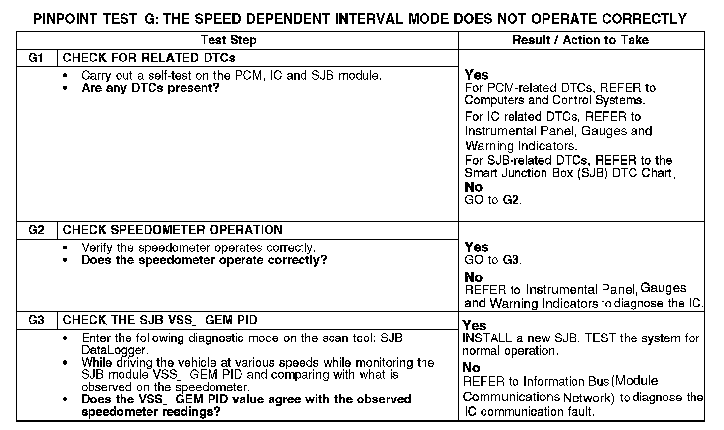 Test G: The Speed Dependent Interval Mode Does Not Operate Correctly