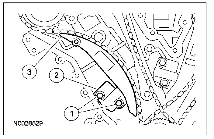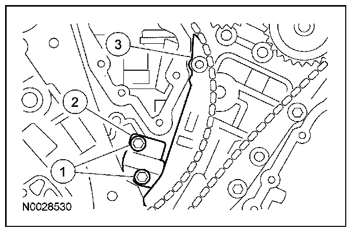 13. Remove the LH timing chain tensioner and tensioner arm.