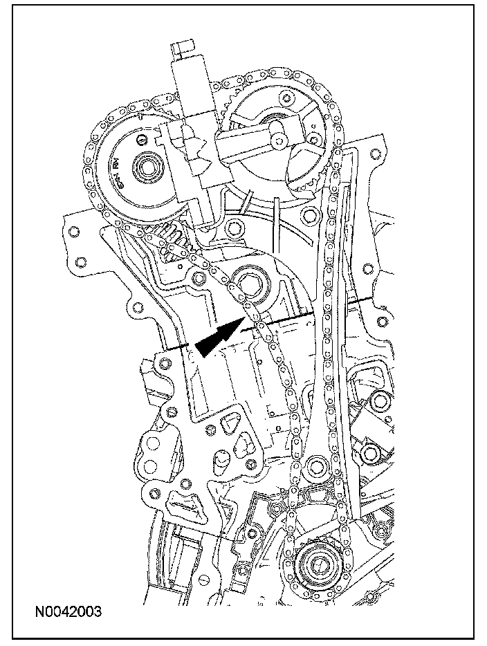 8. Remove the RH timing chain tensioner arm.