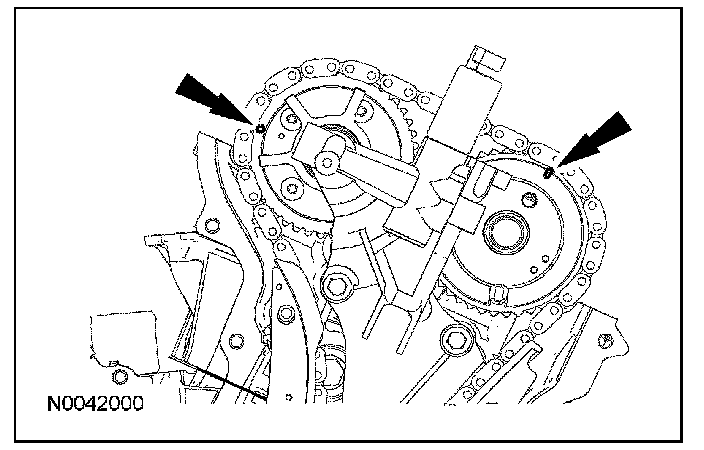 CAUTION: Failure to verify correct timing drive component alignment will result in severe engine damage.