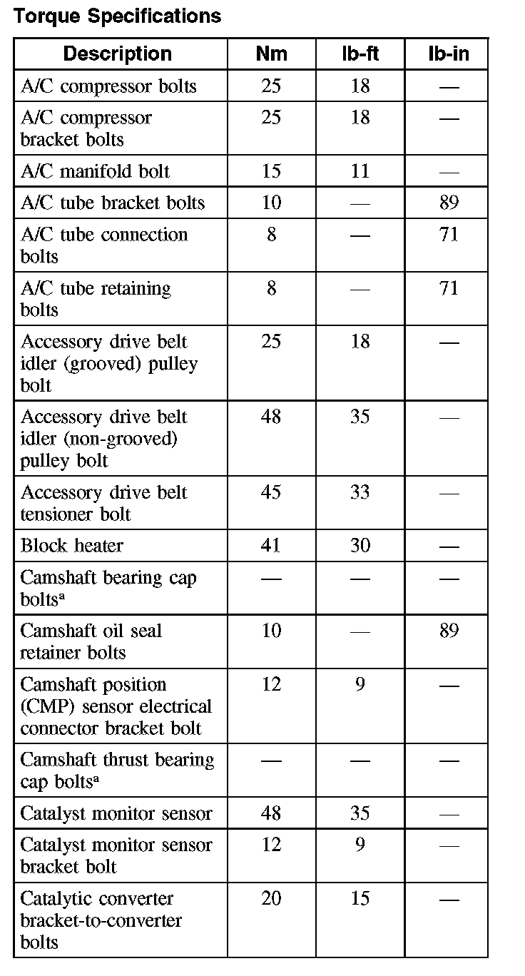 Torque Specifications (Part 1):