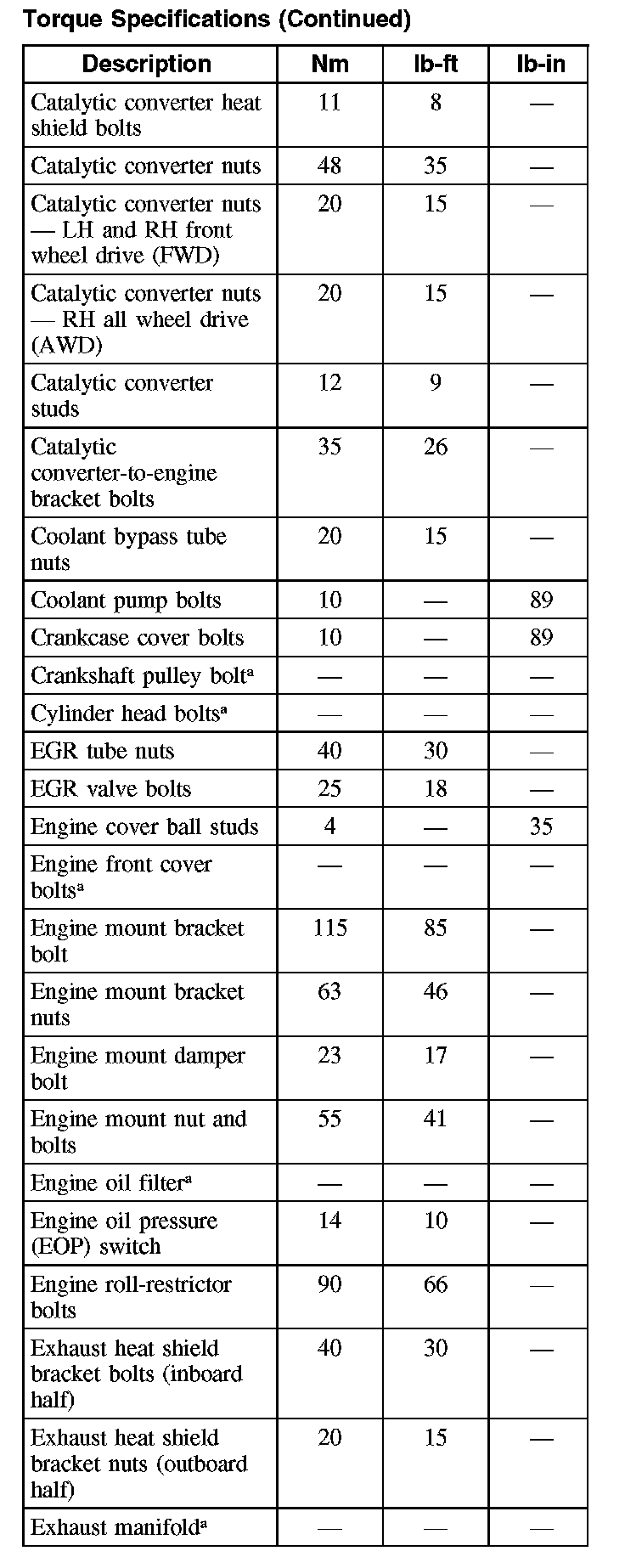 Torque Specifications (Part 3):