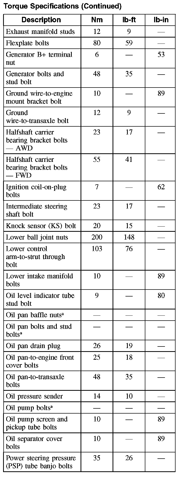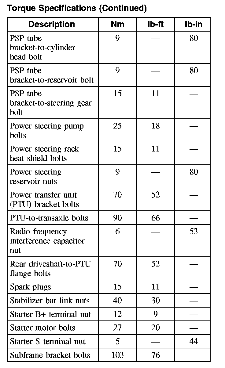 Torque Specifications (Part 4):