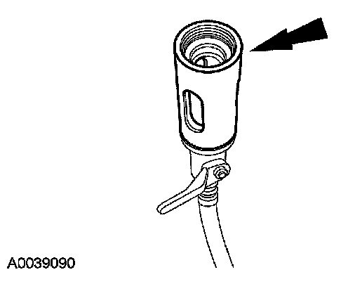 5. Install the dye/lubricant injector between the low-side service gauge port valve and the refrigerant service station or manifold gauge set.