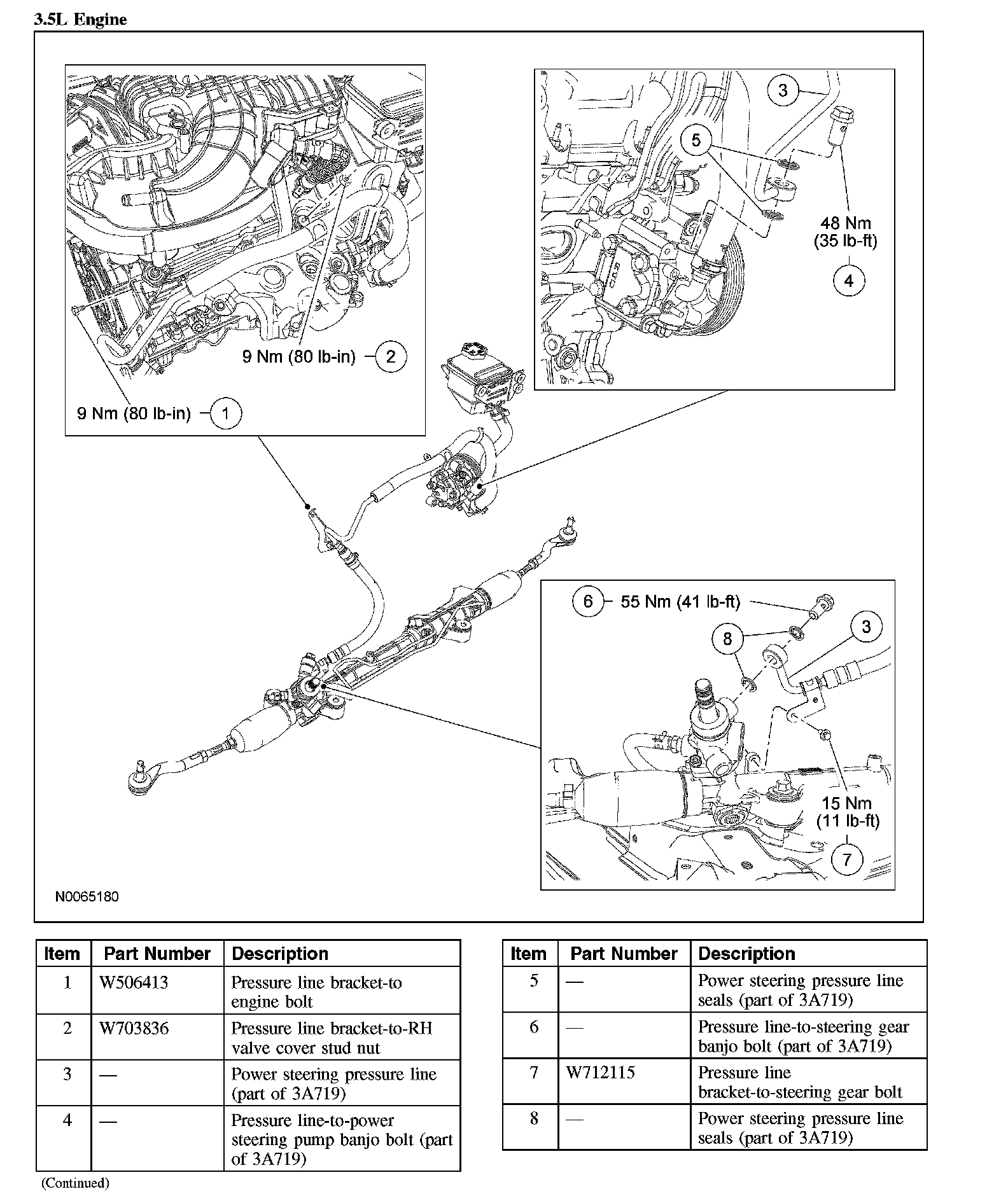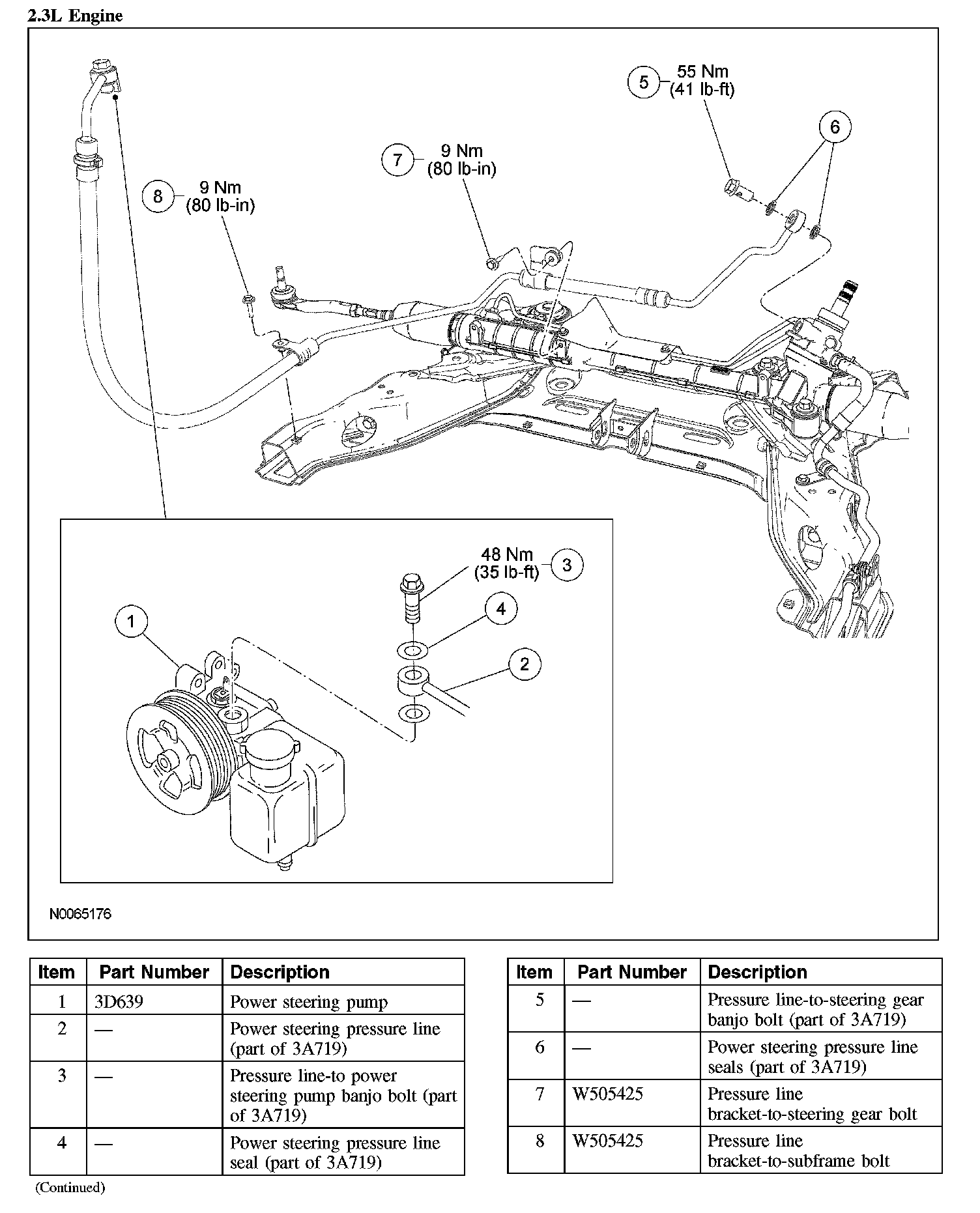 17. CAUTION: New banjo bolts and new seals must be installed any time the power steering pressure line is disconnected from the power steering pump and/or the power steering gear or a fluid leak may occur.