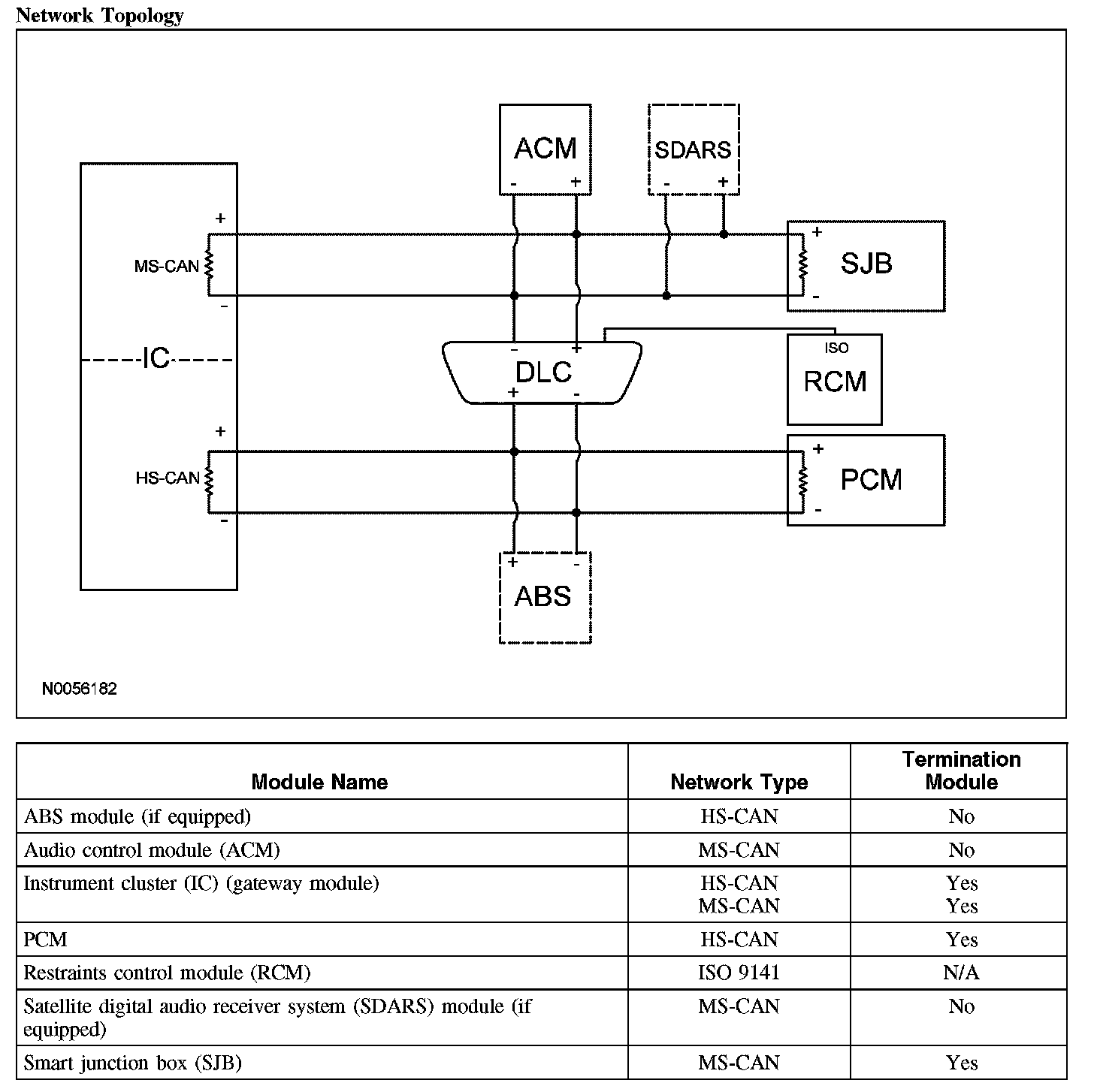 The IC is the gateway module, translating HS-CAN to MS-CAN and vice versa. This information allows a message to be distributed throughout both networks. The IC is the only module on this vehicle that has this ability.