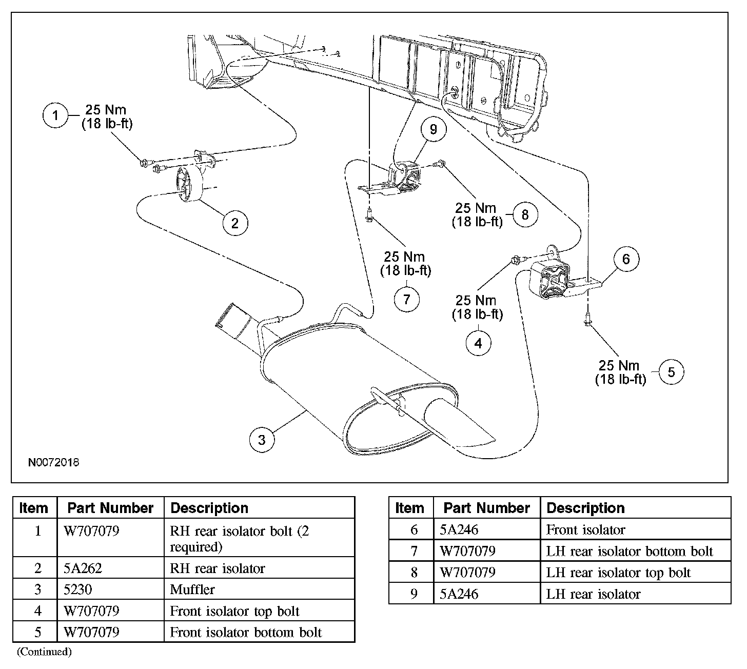 ^ Make sure to correctly align the catalytic converter to the exhaust manifold before installing the fasteners. The catalytic converter is correctly positioned when the hanger rods are centered in the isolators.