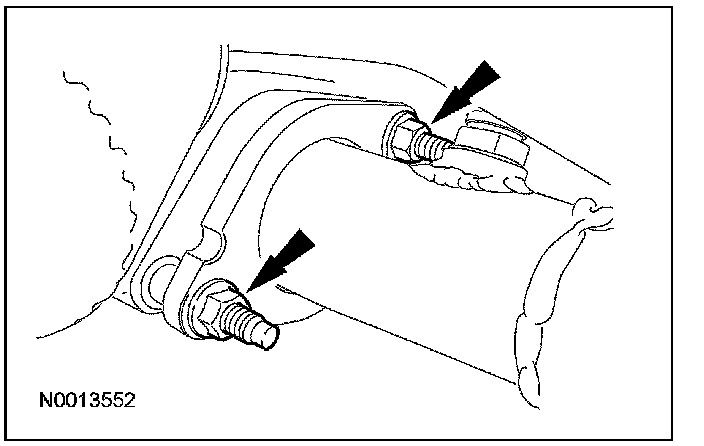 7. Remove and discard the 2 LH catalytic converter-to-exhaust manifold nuts.