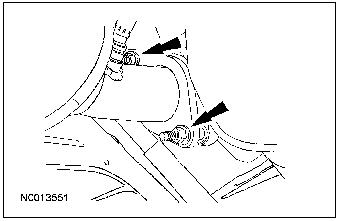 4. CAUTION: When repairing the exhaust system or removing exhaust components, disconnect all heated oxygen sensors (HO2S) and catalyst monitor sensors at the wiring connectors to prevent damage to the sensors and wiring harnesses.