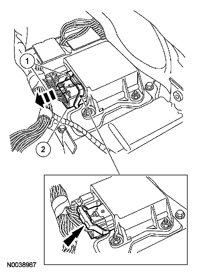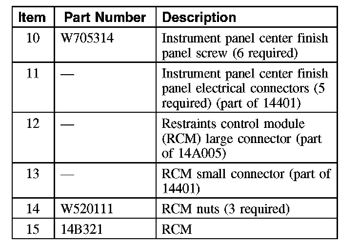 1. WARNING: Always tighten the fasteners of the restraints control module (RCM) and impact sensor (if equipped) to the specified torque. Failure to do so may result in incorrect restraint system operation, which increases the risk of personal injury or death in a crash.