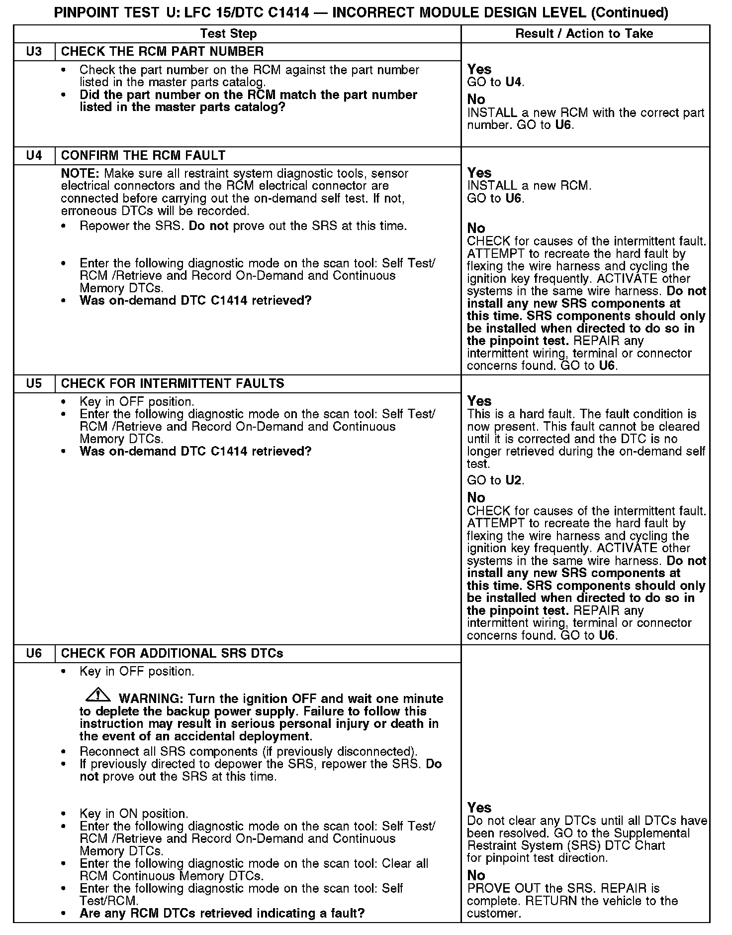 PINPOINT TEST U: LFC 15/DTC C1414 - INCORRECT MODULE DESIGN LEVEL