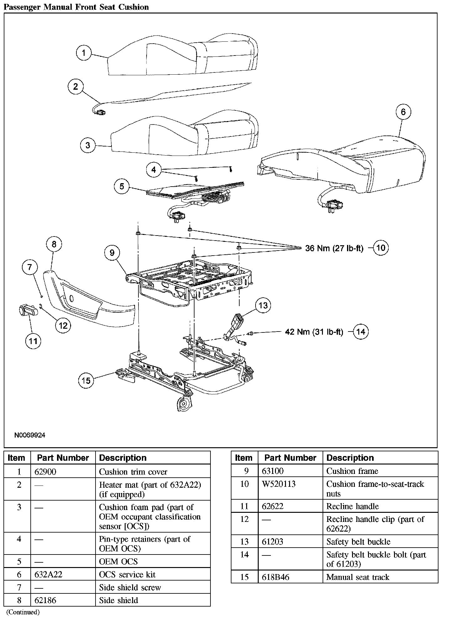 3. Remove the pin-type retainers attaching the backrest trim cover to the inboard and outboard recliners.