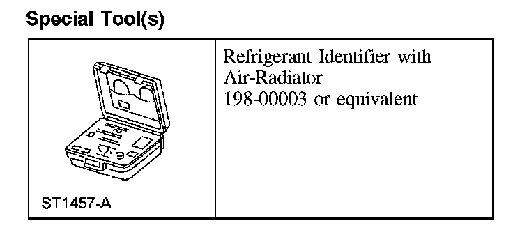 1. NOTE: An A/C refrigerant analyzer must be used to identify gas samples taken directly from the refrigeration system or storage containers prior to recovering or charging the refrigerant system.