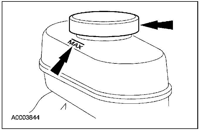 ^ Fill the brake master cylinder reservoir with clean, specified brake fluid if necessary.