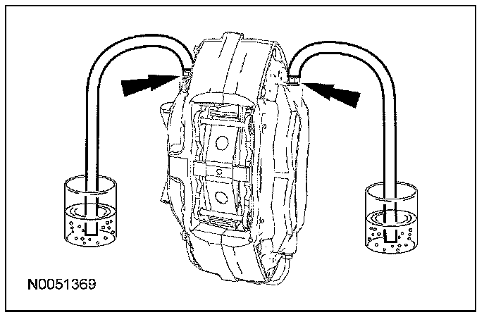 5. Loosen the RH rear bleeder screw and leave open until clear, bubble-free brake fluid flows into the container. Wait 15 seconds after clear, bubble-free fluid flows through the rubber hose.