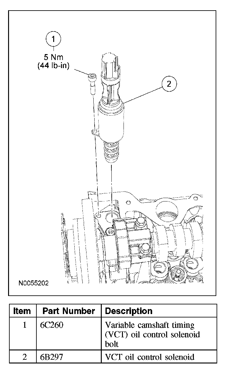 VARIABLE CAMSHAFT TIMING (VCT) OIL CONTROL SOLENOIDRemoval and Installation