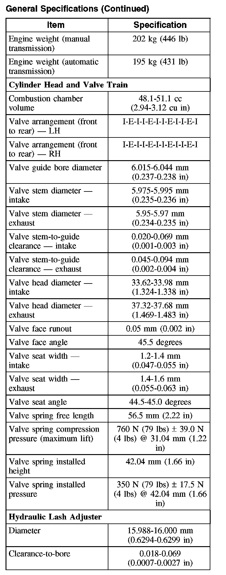 General Specifications