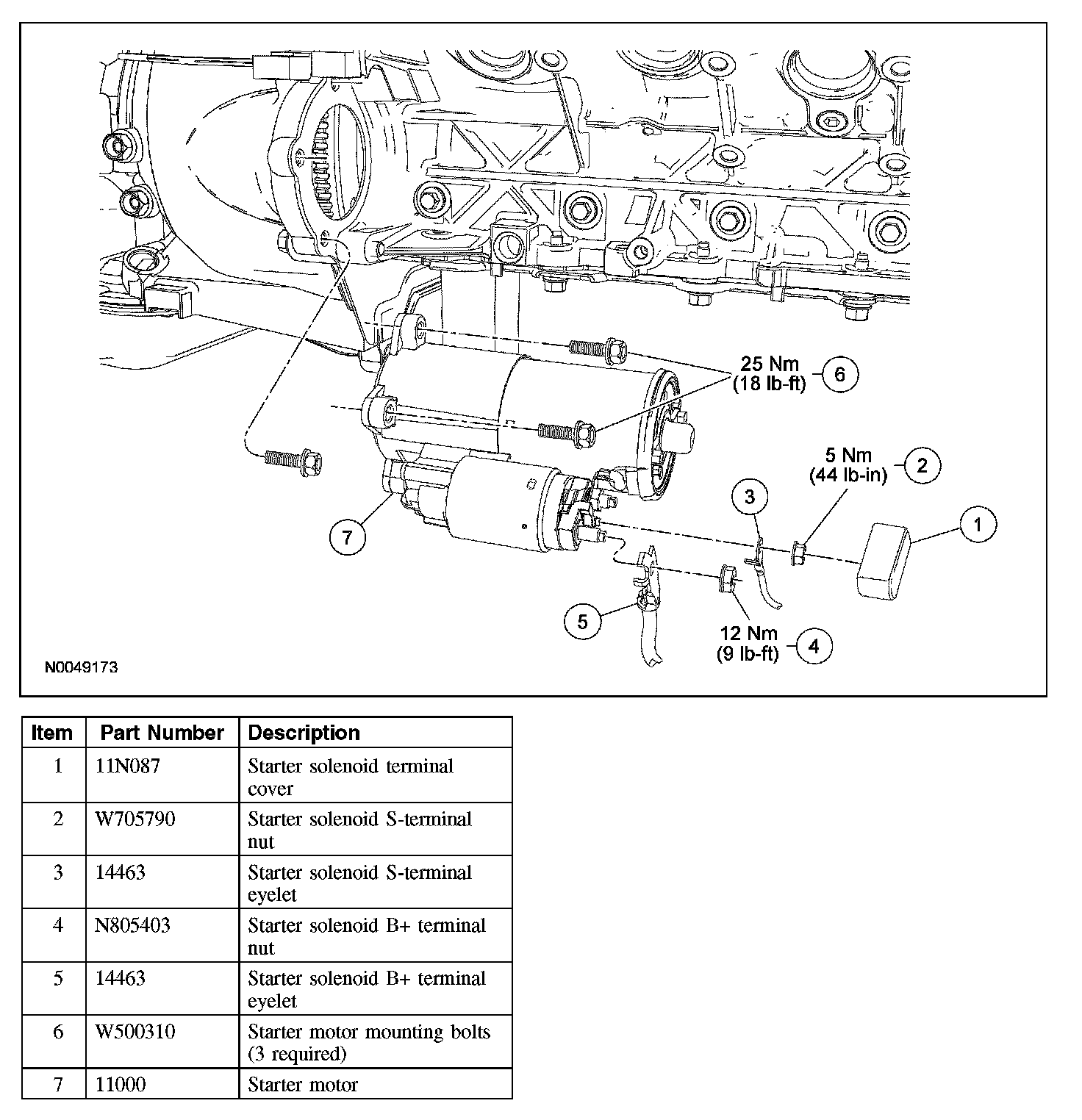- Tighten the B+ terminal nut to 12 Nm (9 lb-ft) and the S-terminal nut to 5 Nm (44 lb-in).