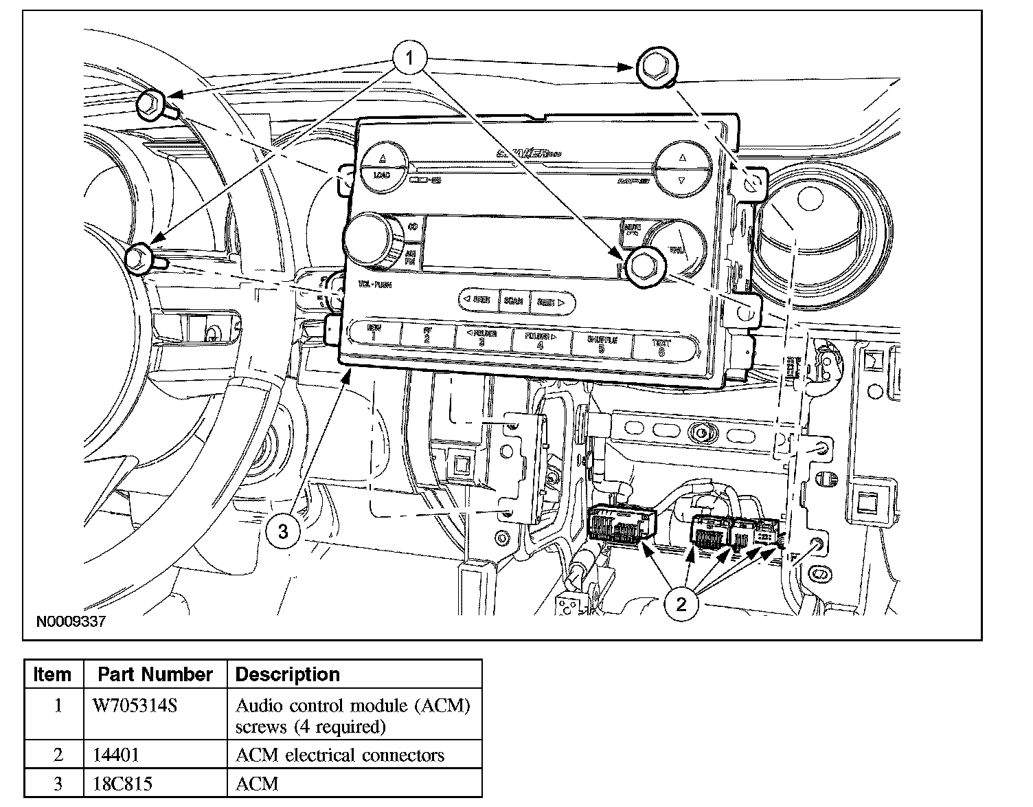 - It is not necessary to remove the audio control module (ACM) to retrieve the part number.