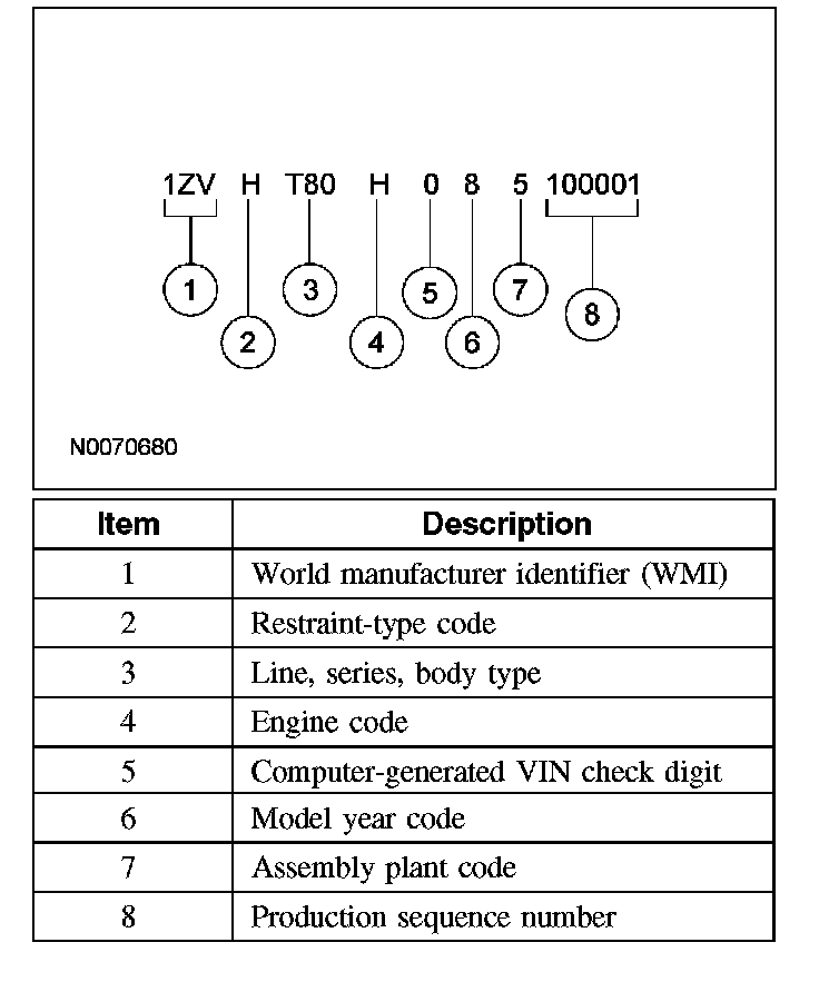 IDENTIFICATION CODESVehicle Identification Number (VIN) Locator: