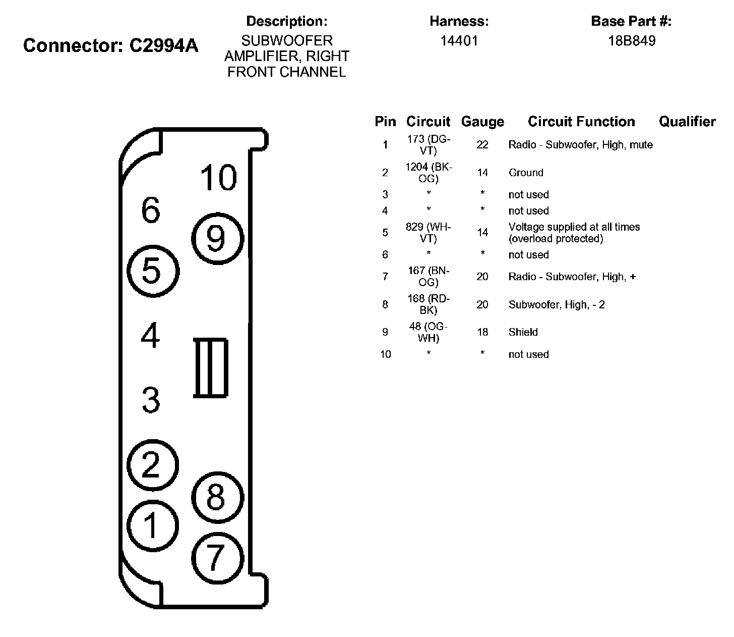 Subwoofer Amplifier, Right Front Channel