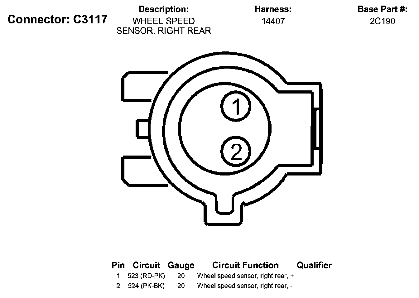 Wheel Speed Sensor, Right Rear
