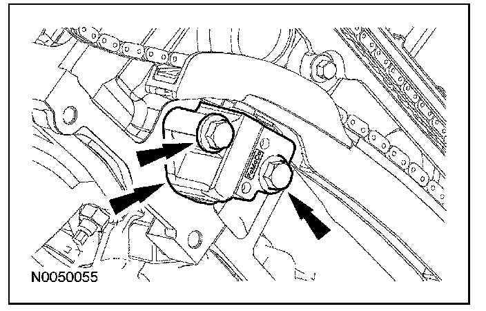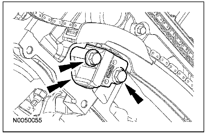 8. Remove the 2 bolts and the LH primary timing chain tensioner.