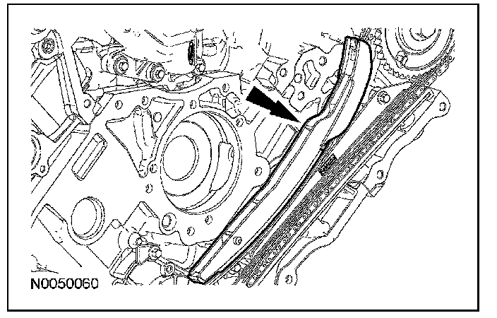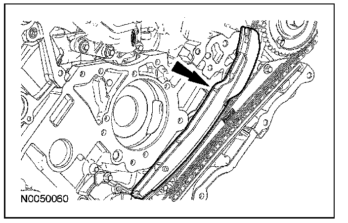 8. Install the LH primary timing chain guide and the 2 bolts.