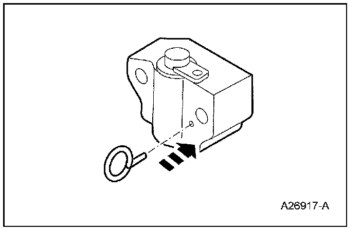 4. Install a suitable pin into the hole of each tensioner housing to hold the ratchet assembly and plunger in place during installation.
