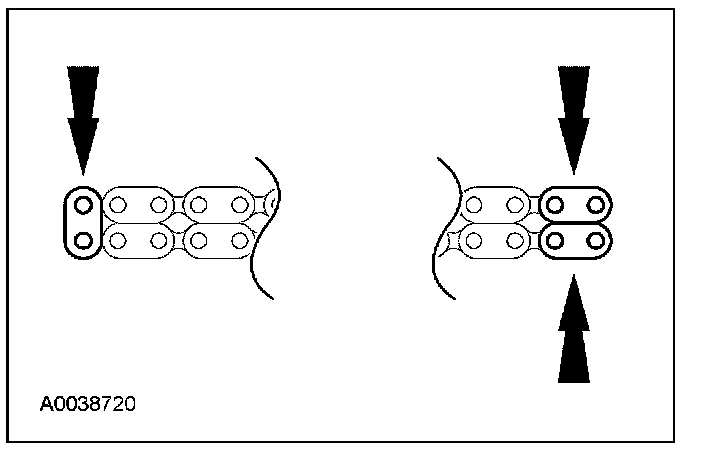 5. If the colored links are not visible, mark one link on one end and 2 links on the other end, and use as timing marks.