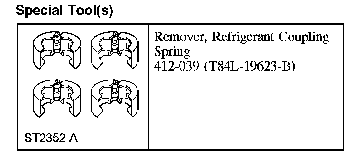 3. CAUTION: Do not use a screwdriver or similar tool to remove the air conditioning (A/C) tube lock coupling spring; this may cause axial scratches across the O-ring seal grooves resulting in refrigerant leaks.