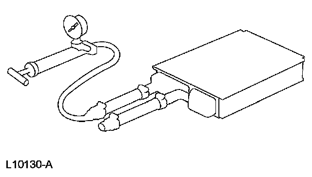 8. If the pressure drops, check the heater water hose connections to the core tubes for leaks. If the heater water hoses do not leak, remove the heater core from the vehicle and carry out the bench test.