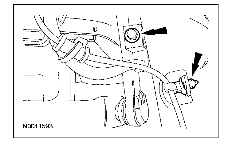 3. Remove the brake line bracket bolt and disconnect the wheel speed sensor wire from the bracket.