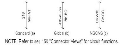 Ford Motor Company uses three different circuit numbering conventions: Standard Circuit Numbering System, Global Circuit Numbering System, and Next Global Circuit Numbering System (NGCNS). With each, the circuit number (which identifies a specific circuit function) is followed by the wire color.