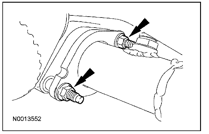 7. Remove and discard the 2 LH catalytic converter-to-exhaust manifold nuts.