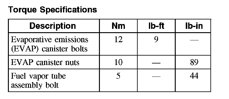 Evaporative Emissions System: Specifications