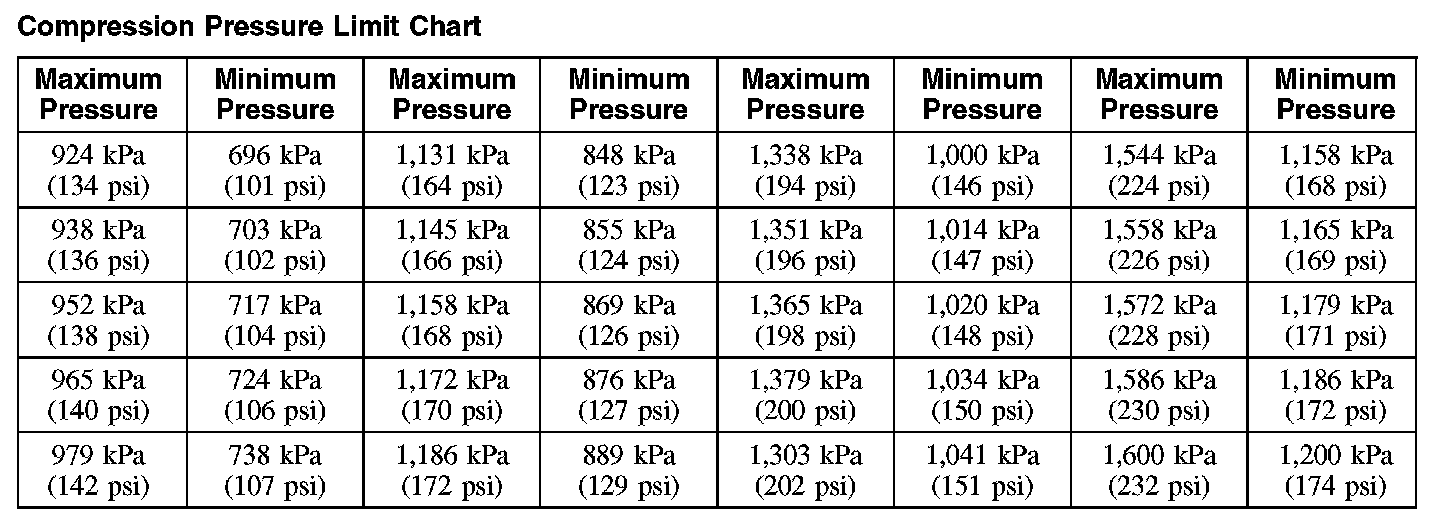 Compression Pressure Limit Chart (Part 1):