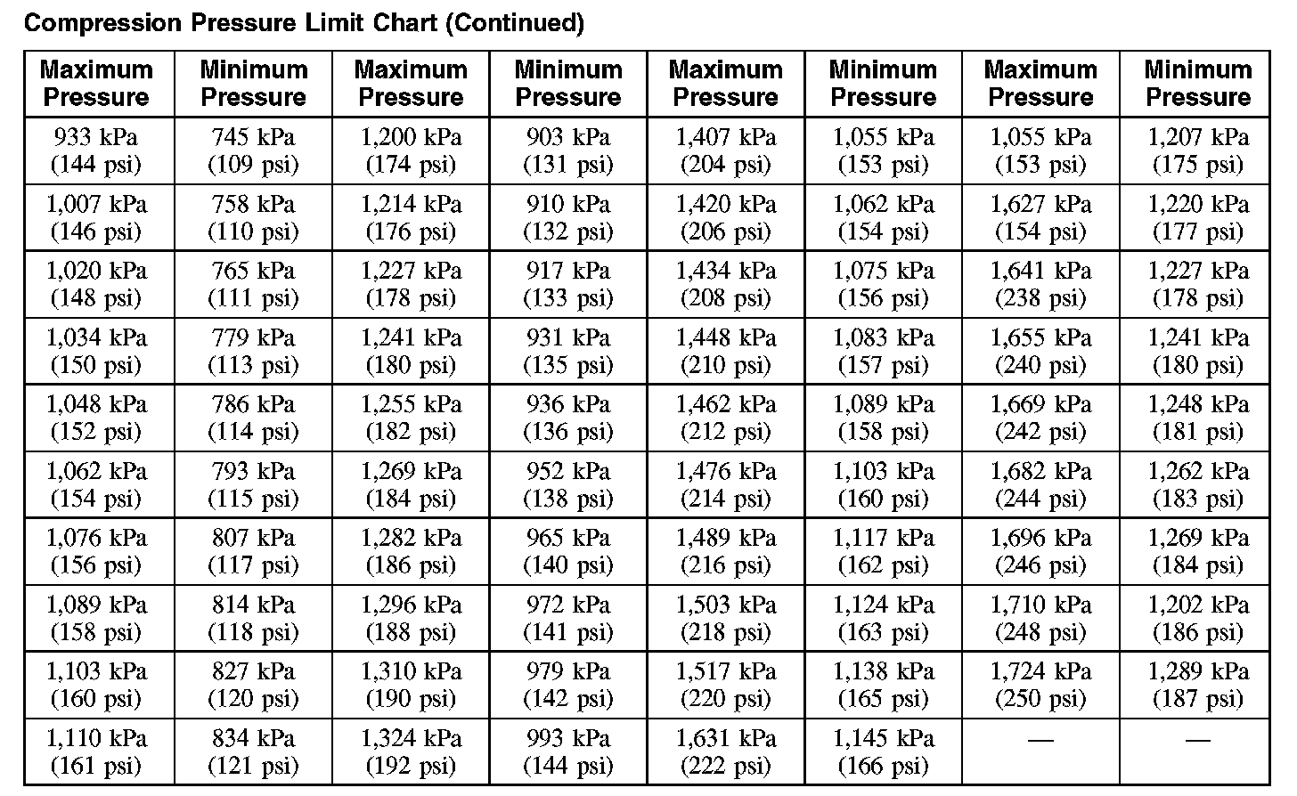 Compression Pressure Limit Chart (Part 2):