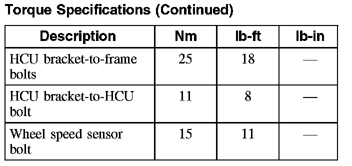 Torque Specifications