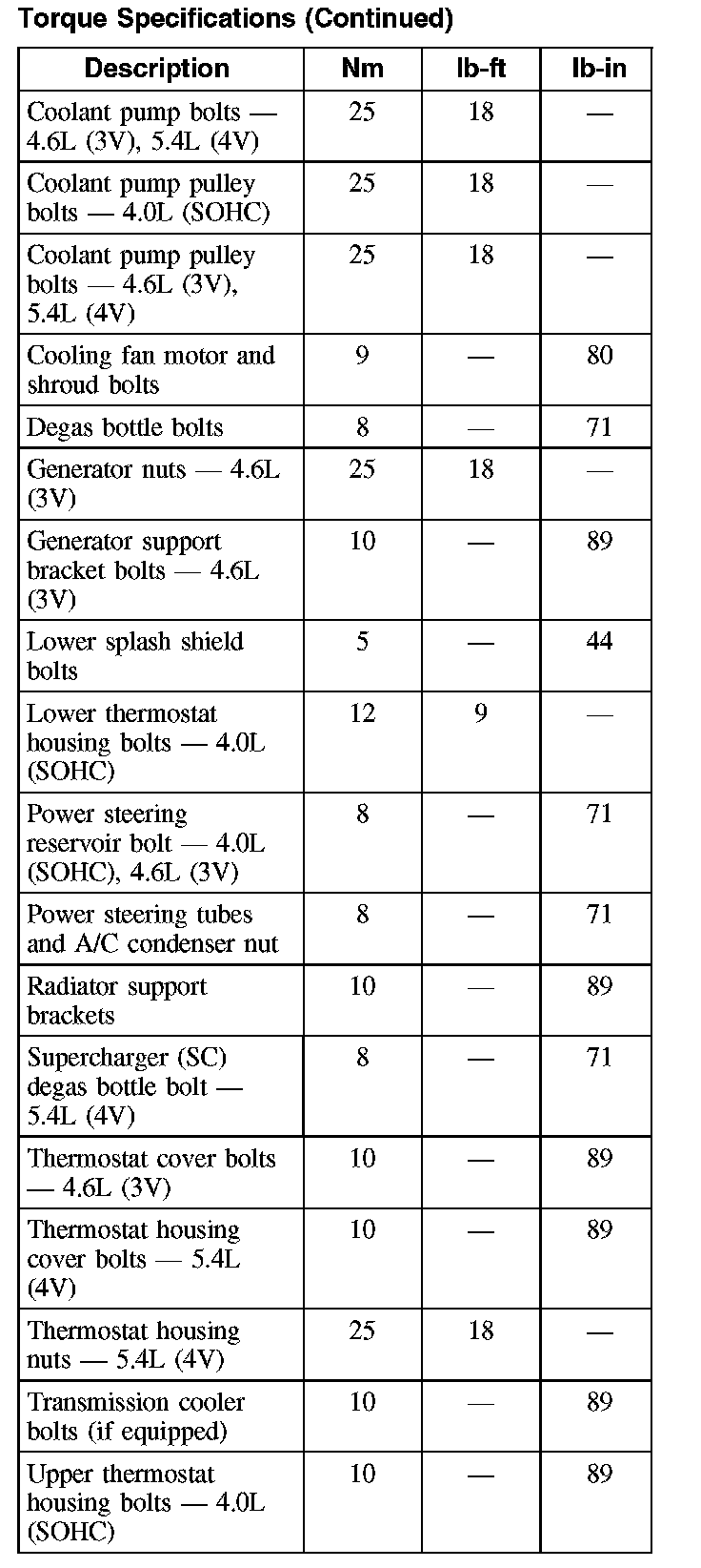 Torque Specifications